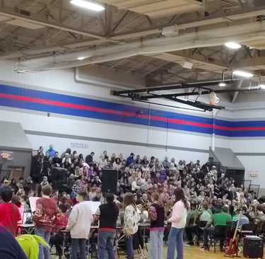 Band is an encore class offered in sixth, seventh, and eighth grade. It is taught by Ryan McFall, Richard Williams, and Kevin Blair. Students in band learn to play woodwind (clarinet, flute, et cetera), brass (trumpet, trombone, et cetera), or percussion (snare drum, xylophone, et cetera) instruments. In high school, students can continue band under Kevin Blair. During fall, high school band students participate in marching band, which is an extracurricular club, and in spring, they take concert band, a class. There are two band concerts every year in both middle and high school. Students can also perform in jazz or pep band, which are not classes but clubs. Jazz band is the only one of these available to middle school students. Jazz band host their own concerts, with instruments like keyboard, saxophone, and guitar.